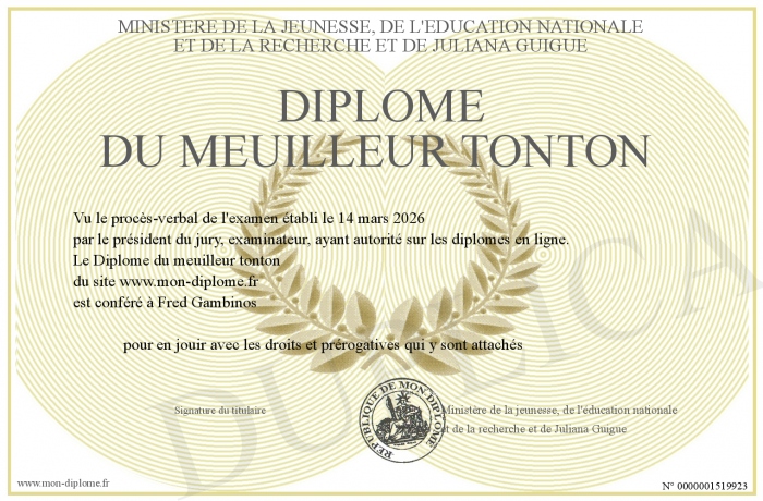Envoyez par email votre Diplôme du meuilleur tonton personalisé