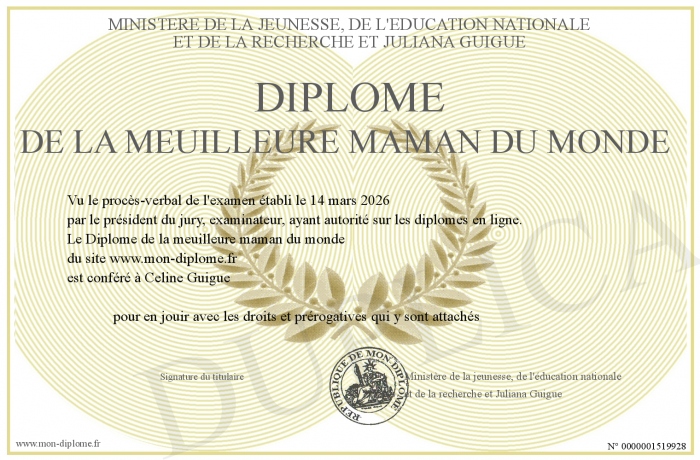 Envoyez par email votre Diplôme de la meuilleure maman du monde personalisé