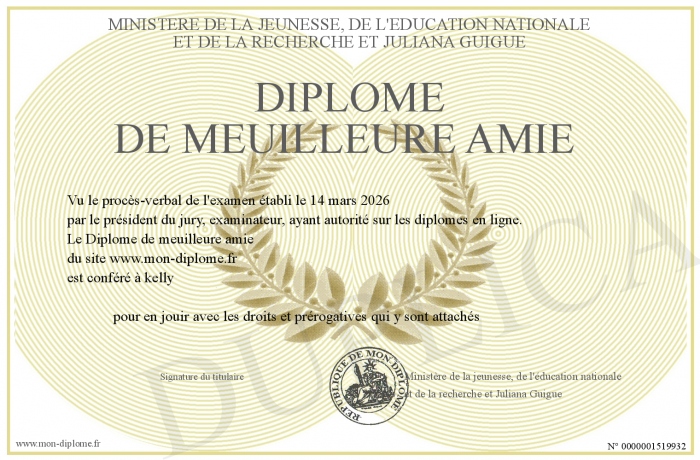 Envoyez par email votre Diplôme de meuilleure amie personalisé