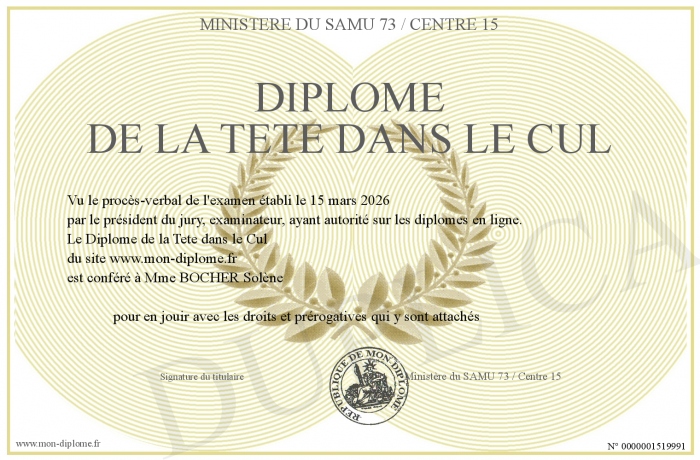 Envoyez par email votre Diplôme de la Tete dans le Cul personalisé