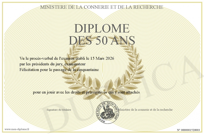 Envoyez par email votre diplôme des 50 ans personalisé