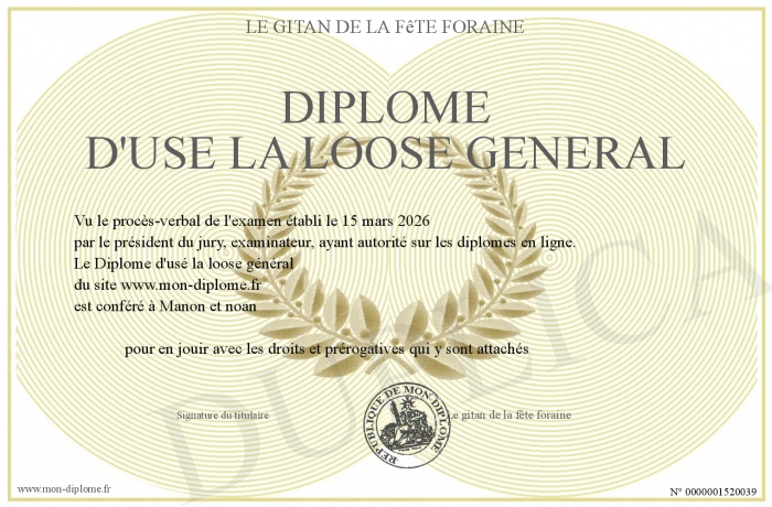 Envoyez par email votre Diplôme d'usé la loose général personalisé