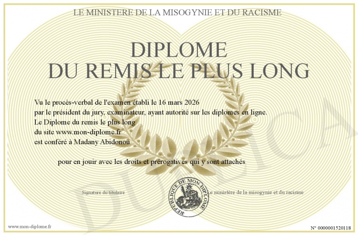 Envoyez par email votre Diplôme du remis le plus long personalisé