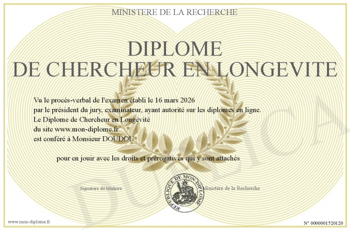 Envoyez par email votre Diplôme de Chercheur en Longévité personalisé