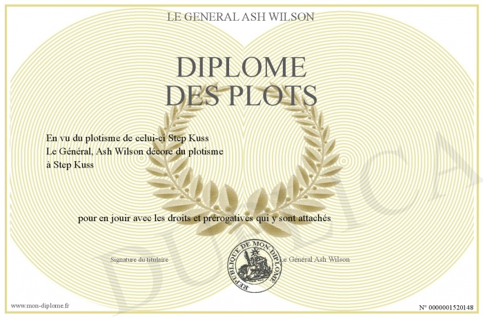 Envoyez par email votre DIPLOME DES PLOTS personalisé