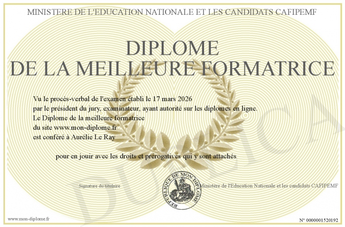 Envoyez par email votre Diplôme de la meilleure formatrice personalisé