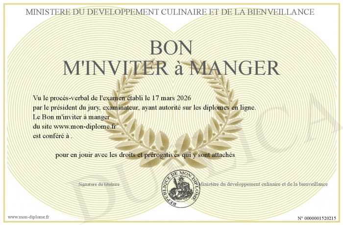 Envoyez par email votre Bon m'inviter à manger personalisé