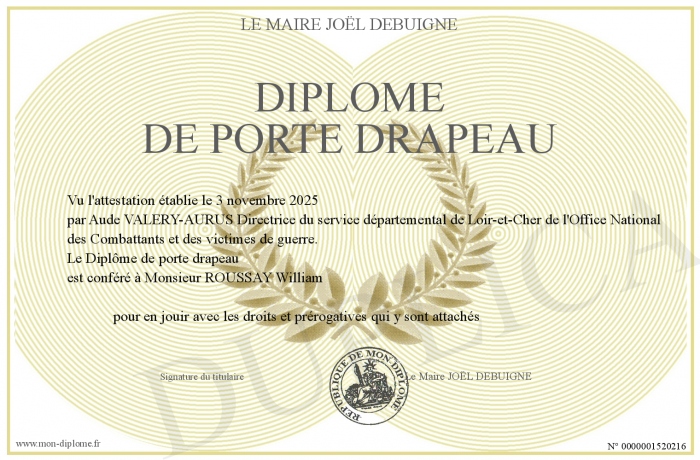 Envoyez par email votre Diplôme de Porte drapeau personalisé