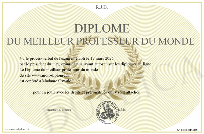 Envoyez par email votre Diplôme du meilleur professeur du monde personalisé