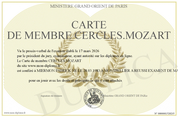 Envoyez par email votre Carte de membre CERCLES.MOZART personalisé