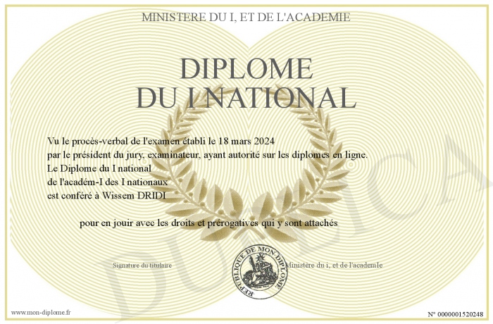 Envoyez par email votre Diplôme du I national personalisé