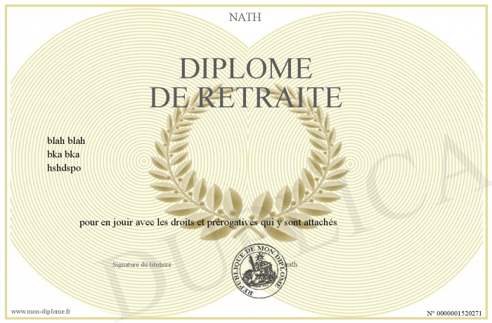 Envoyez par email votre Diplôme de retraite personalisé
