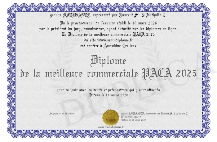 Envoyez par email votre Diplôme de la meilleure commerciale PACA 2025 personalisé