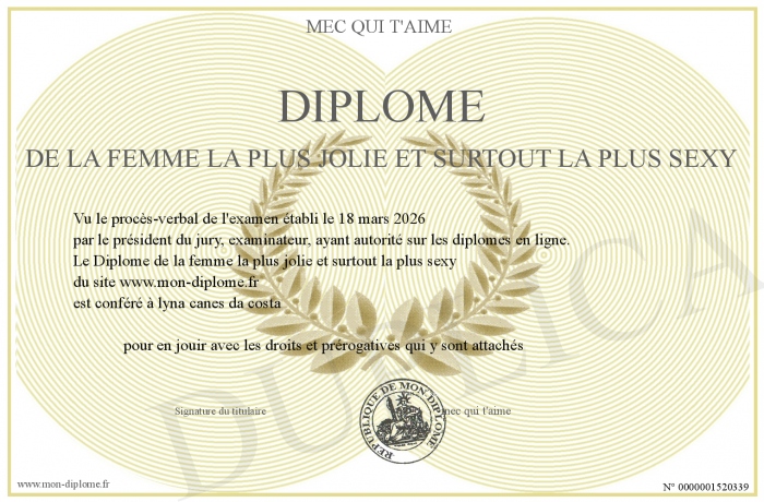 Envoyez par email votre Diplôme de la femme la plus jolie et surtout la plus sexy personalisé