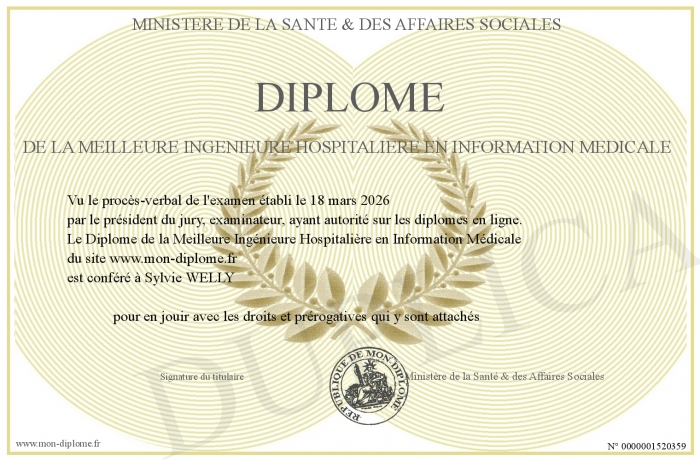 Envoyez par email votre Diplôme de la Meilleure Ingénieure Hospitalière en Information Médicale personalisé