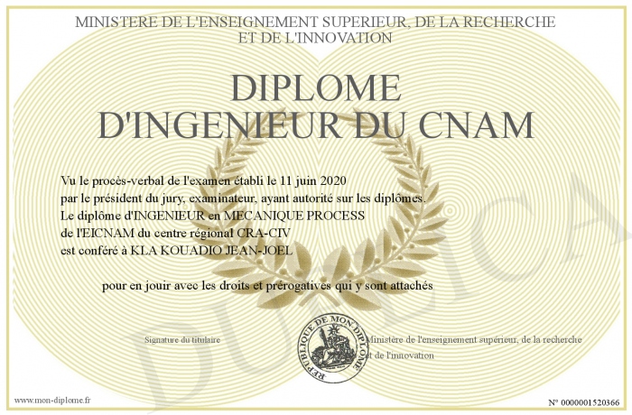 Envoyez par email votre Diplôme d'ingenieur du cnam personalisé