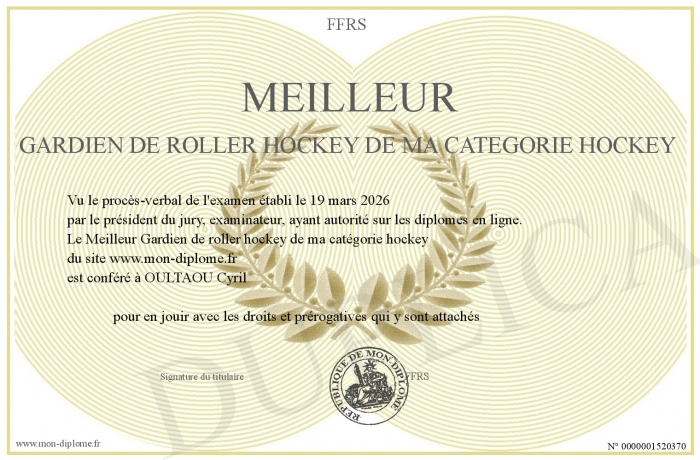 Envoyez par email votre Meilleur Gardien de roller hockey de ma catégorie hockey personalisé