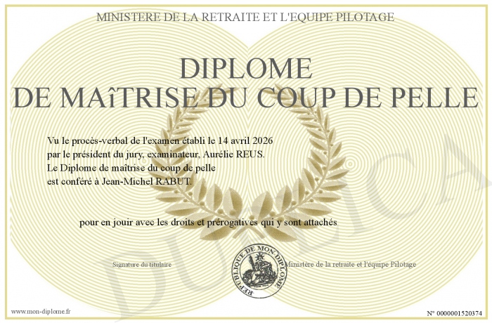 Envoyez par email votre Diplôme de maîtrise du coup de pelle personalisé