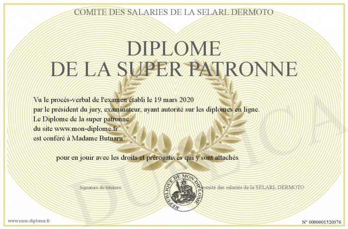 Envoyez par email votre Diplôme de la super patronne personalisé