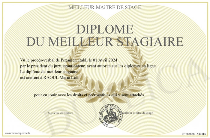 Envoyez par email votre Diplôme du meilleur stagiaire personalisé