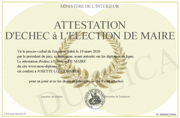 Envoyez par email votre attestation d'échec à l'élection DE MAIRE personalisé