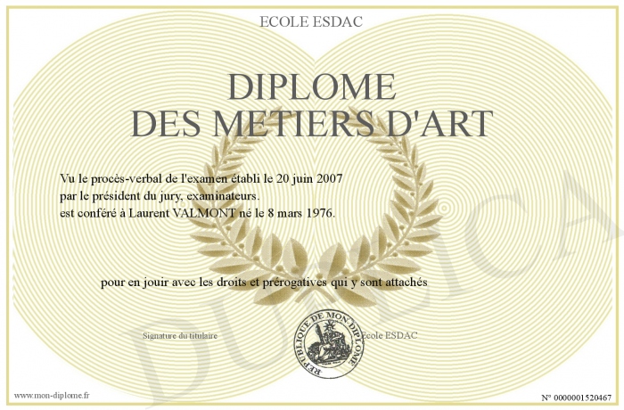 Envoyez par email votre Diplôme des métiers d'art personalisé