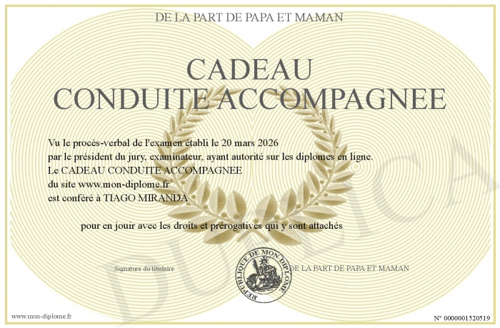Envoyez par email votre CADEAU CONDUITE ACCOMPAGNEE personalisé