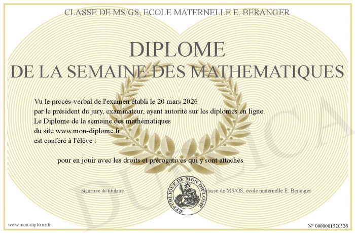 Envoyez par email votre Diplôme de la semaine des mathématiques personalisé