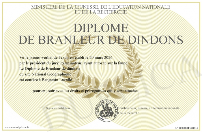 Envoyez par email votre Diplôme de Branleur de dindons personalisé