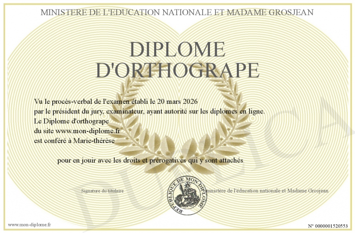 Envoyez par email votre Diplôme d'orthogrape personalisé