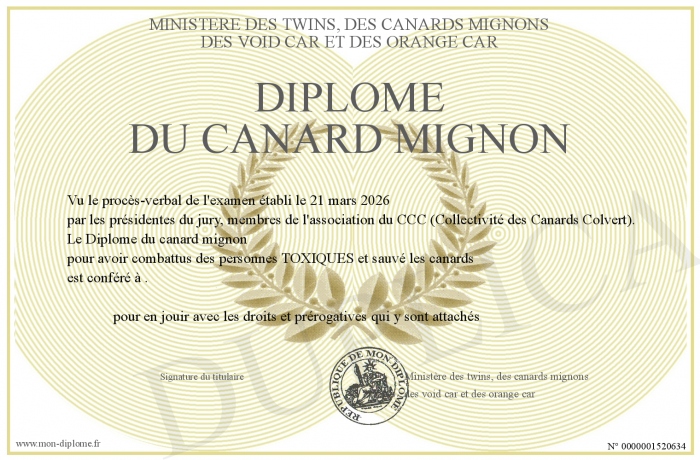Envoyez par email votre Diplôme du canard mignon personalisé