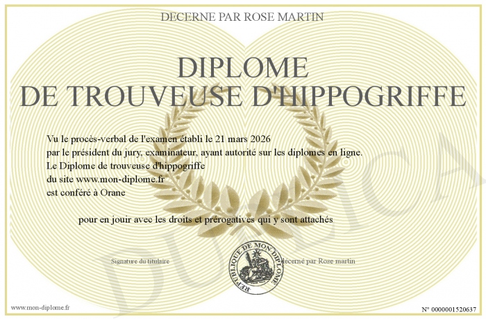 Envoyez par email votre Diplôme de trouveuse d'hippogriffe personalisé