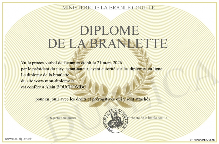 Envoyez par email votre diplome de la branlette personalisé