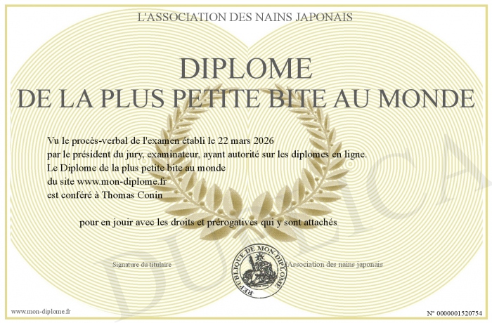 Envoyez par email votre Diplôme de la plus petite bite au monde personalisé