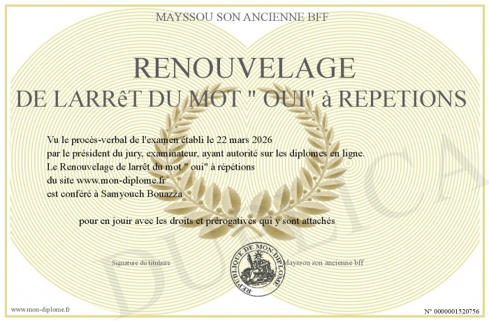 Envoyez par email votre Renouvelage de larrêt du mot - oui- à répétions personalisé