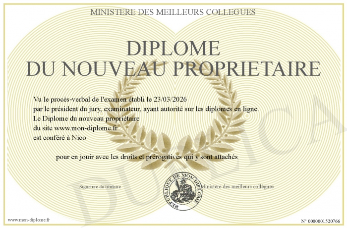 Envoyez par email votre Diplôme du nouveau propriétaire personalisé