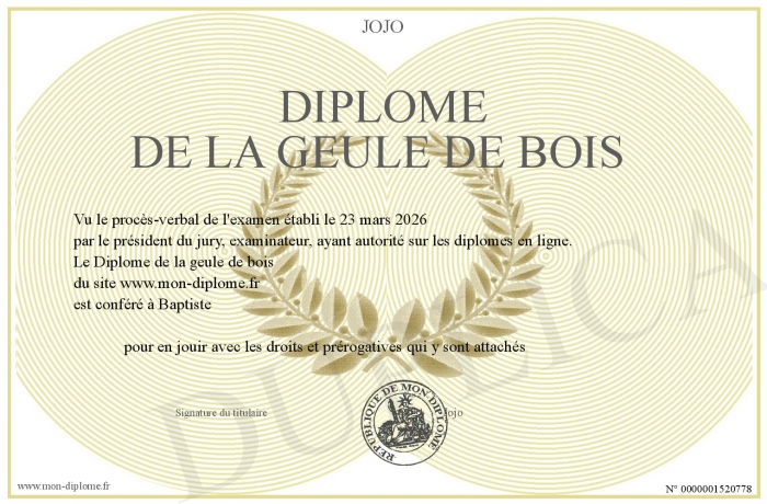 Envoyez par email votre Diplôme de la geule de bois personalisé
