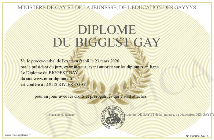 Envoyez par email votre Diplôme du BIGGEST GAY personalisé