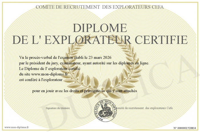 Envoyez par email votre Diplôme de l' explorateur certifié personalisé