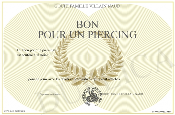 Envoyez par email votre BON POUR UN PIERCING personalisé