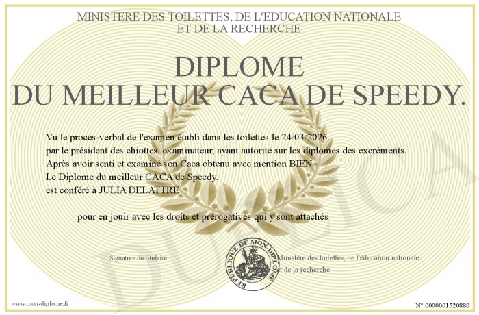 Envoyez par email votre Diplôme du meilleur CACA de Speedy. personalisé