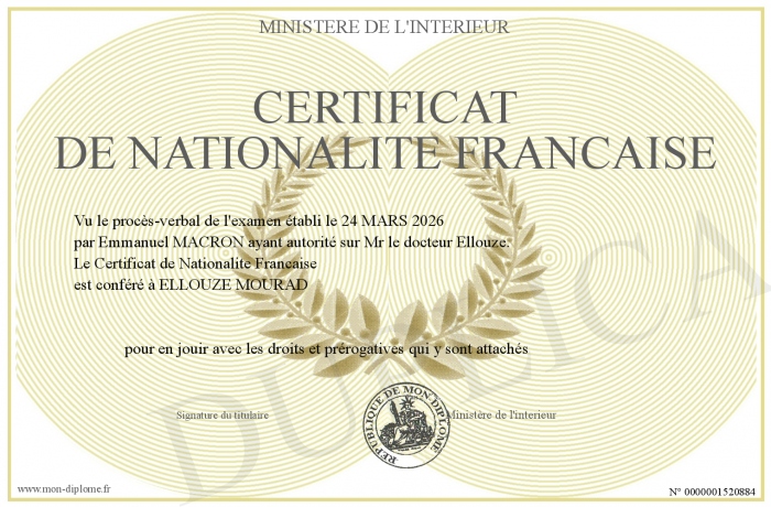 Envoyez par email votre Certificat de Nationalite Francaise personalisé