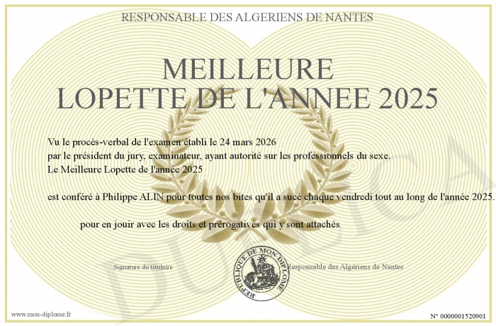 Envoyez par email votre Meilleure Lopette de l'année 2025 personalisé