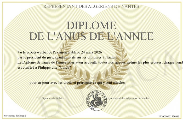 Envoyez par email votre Diplôme de l'anus de l'année personalisé