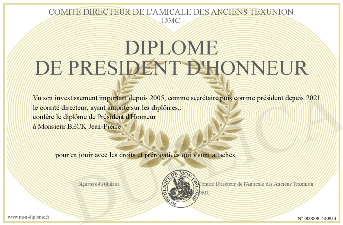 Envoyez par email votre Diplôme de Président d'Honneur personalisé