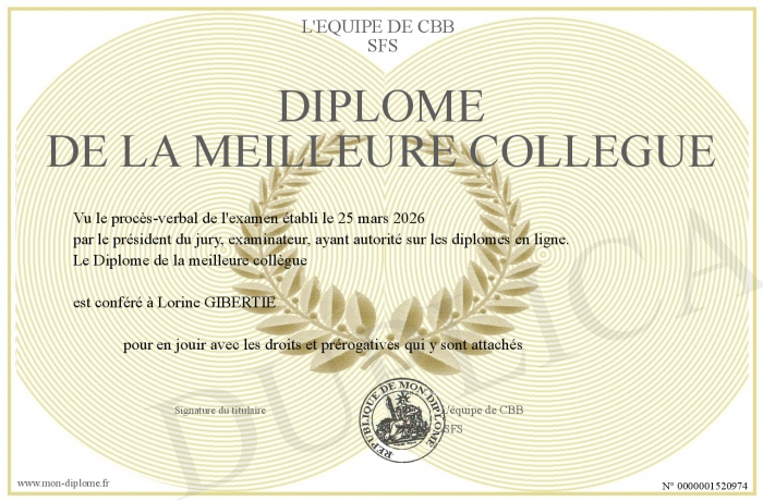 Envoyez par email votre Diplôme de la meilleure collègue personalisé