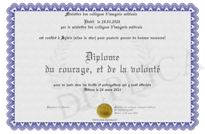 Envoyez par email votre Diplôme du courage, et de la volonté personalisé