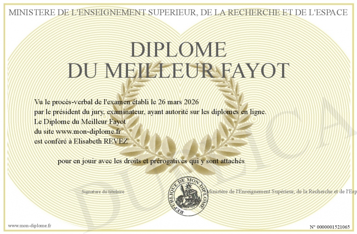 Envoyez par email votre Diplôme du Meilleur Fayot personalisé
