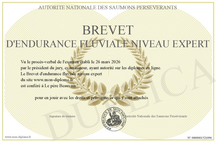 Envoyez par email votre Brevet d'endurance fluviale niveau expert personalisé