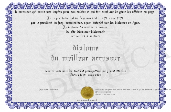 Envoyez par email votre diplôme du meilleur arroseur personalisé